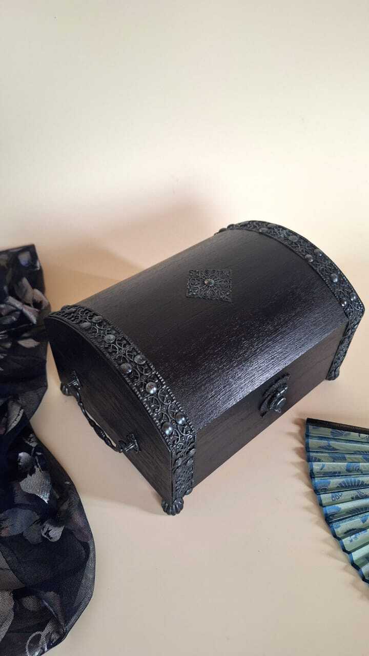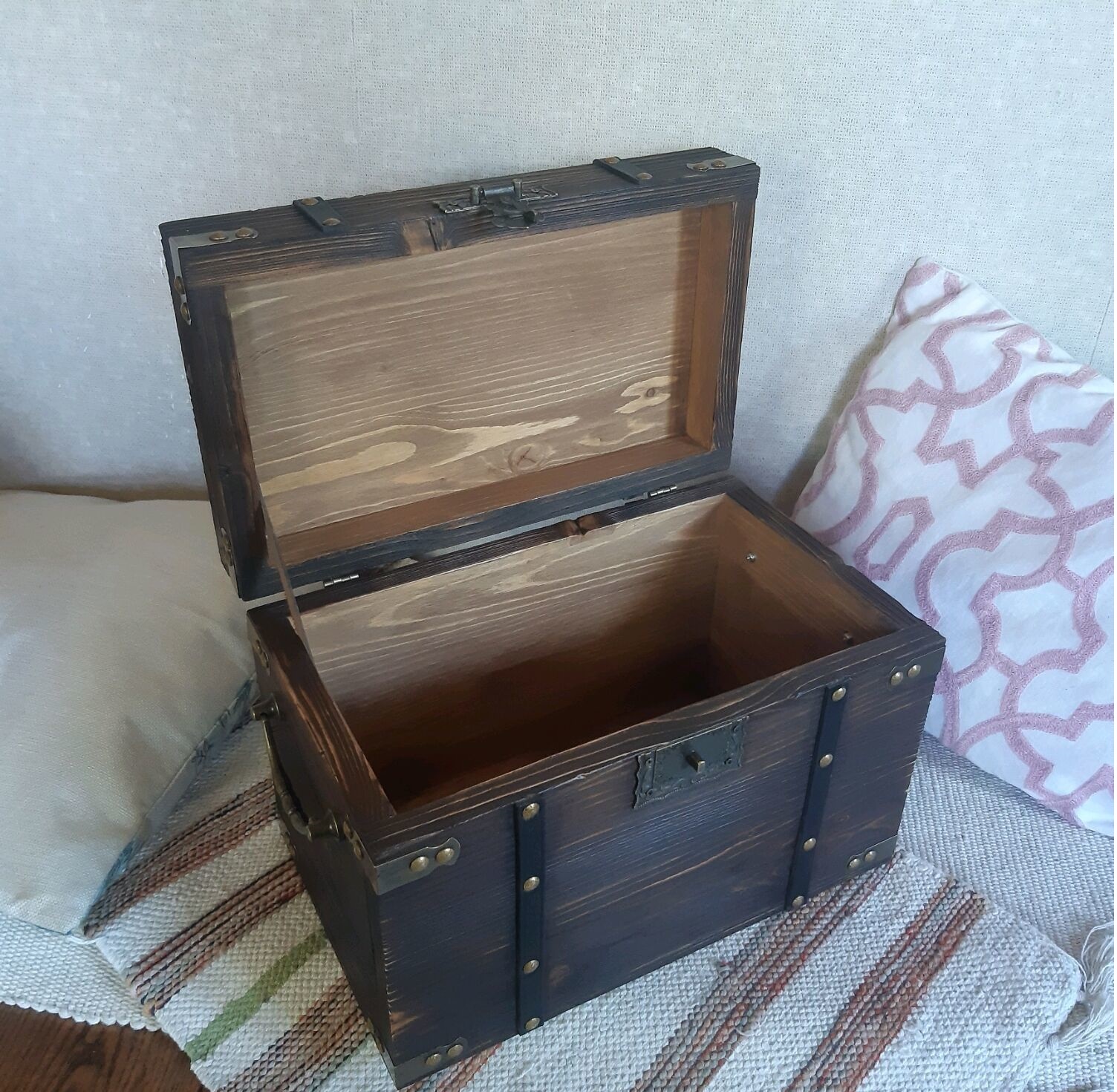 Внутренний размер сундучка позволяет использовать в качестве свадебного ( сундук- казна) для конвертов.