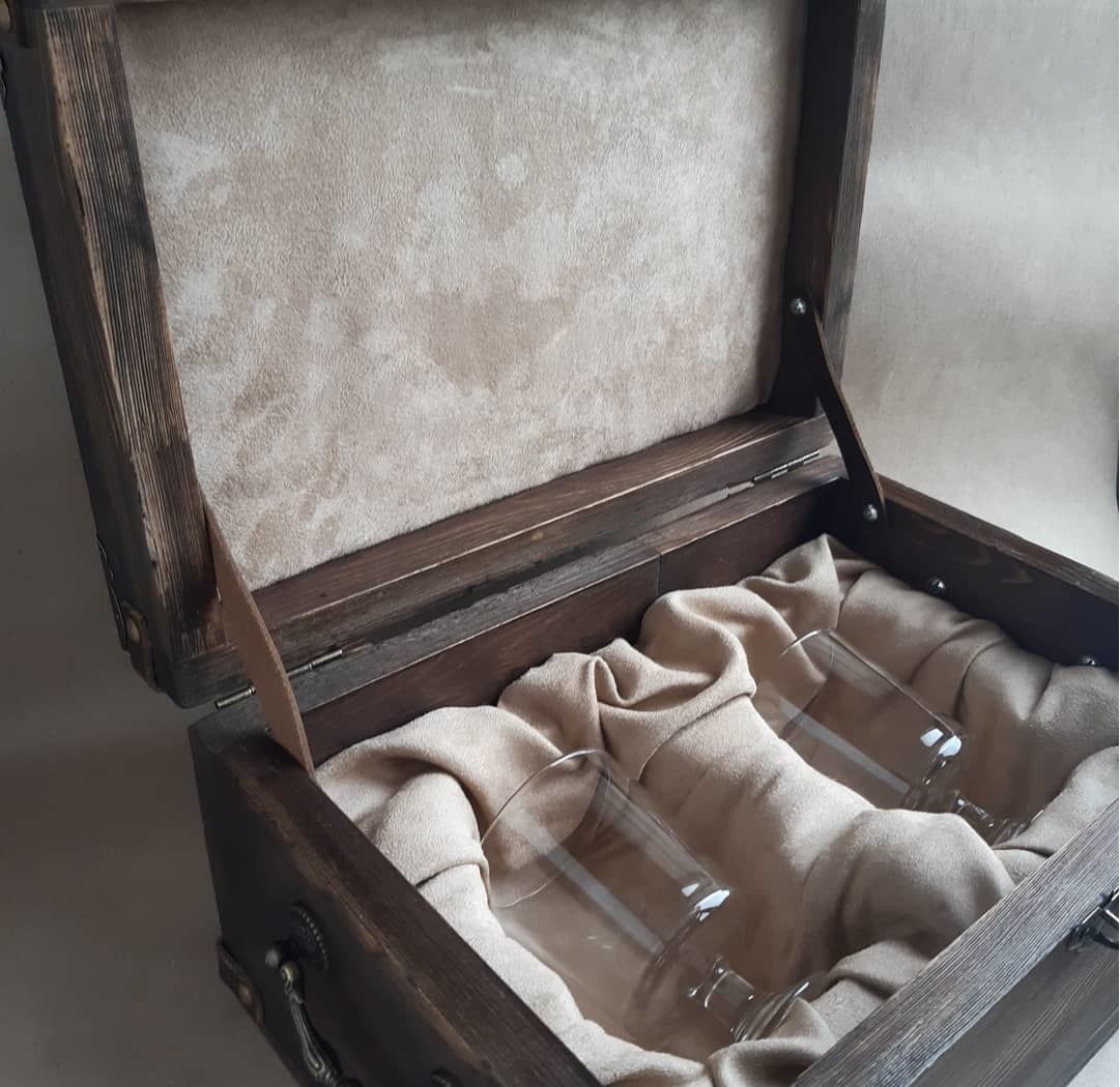 Короб: Сундук Русский Стиль под бокалы с гравировкой подарок мужчине