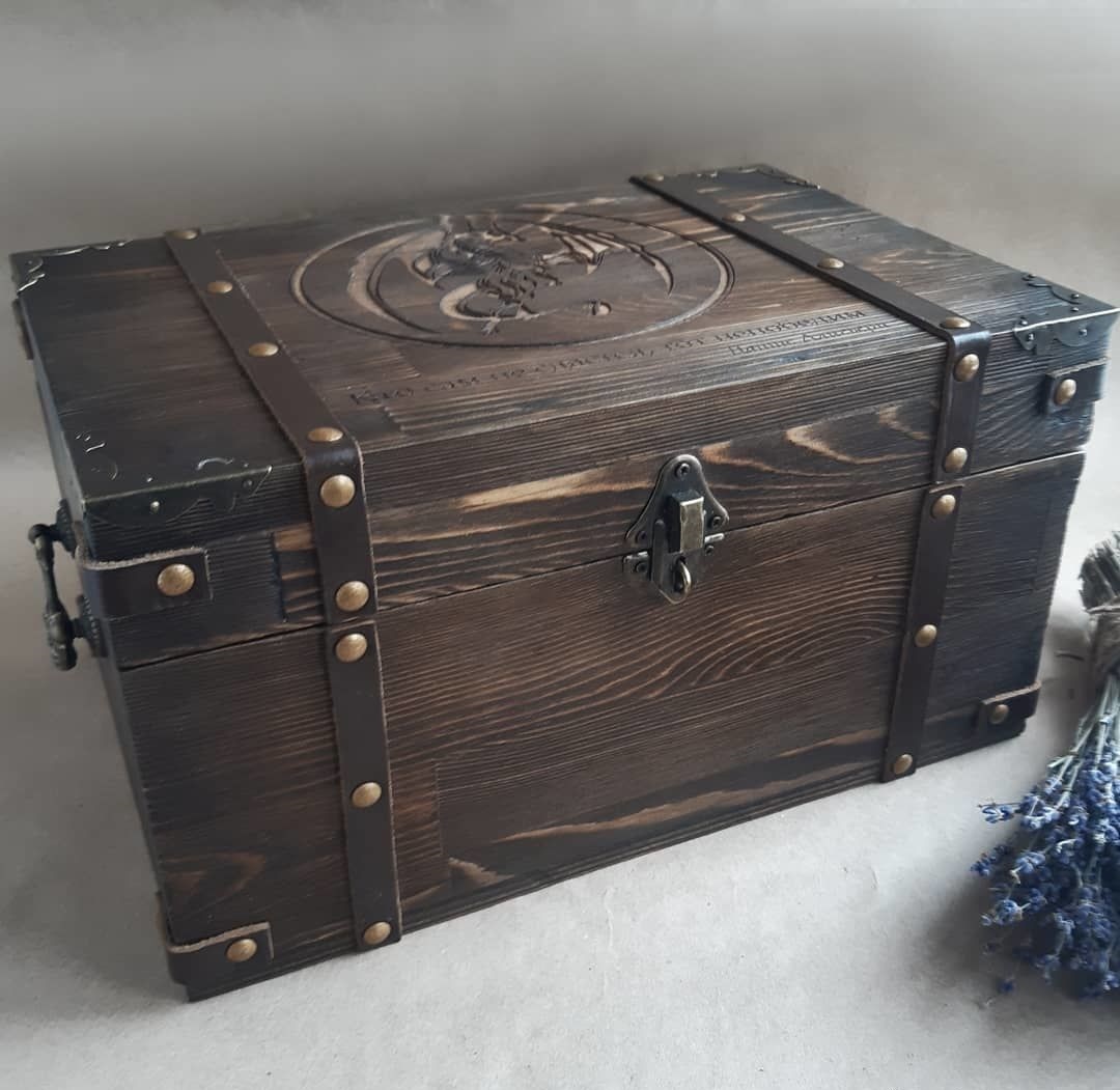Сундук деревянный русский стиль с гравировкой именной подарок