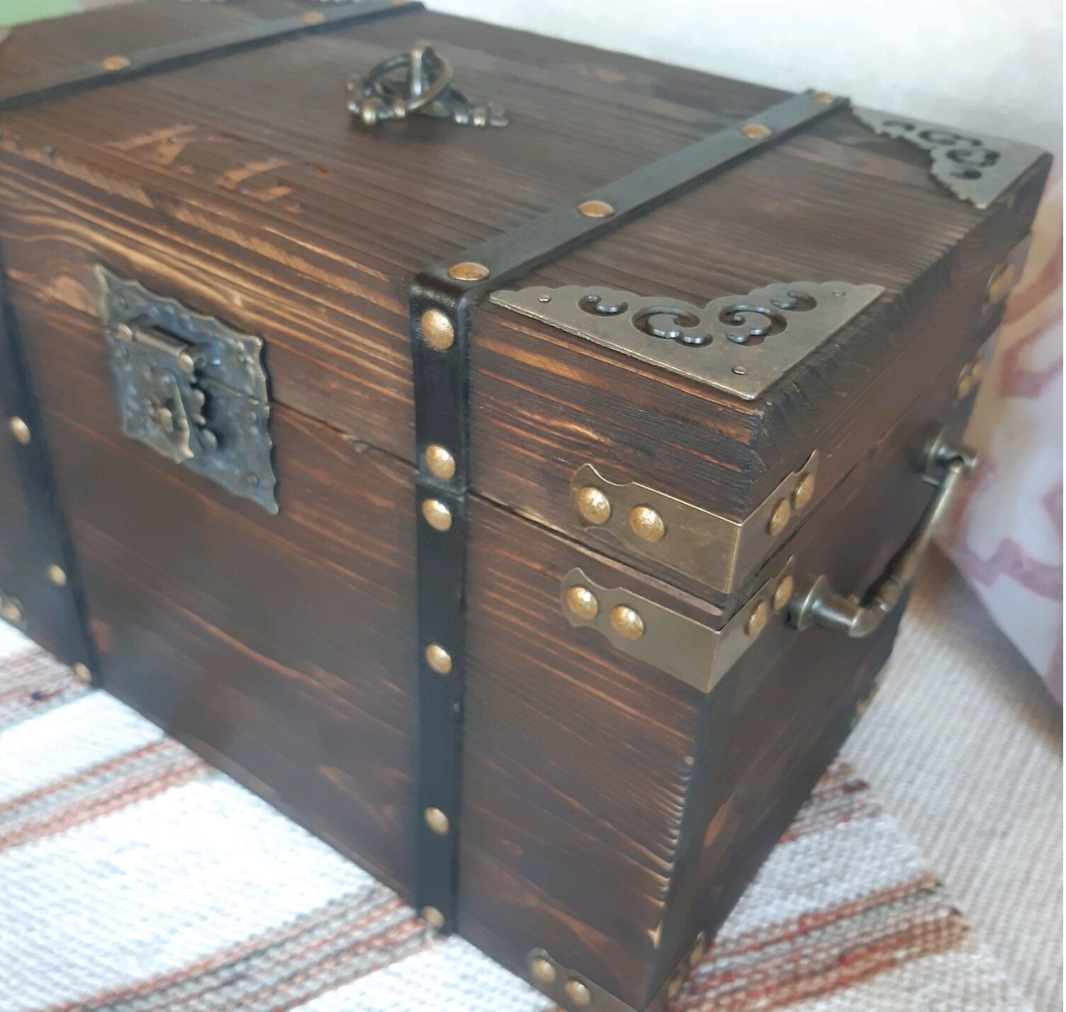 Также сундучок можно использовать и для упаковки более ценного подарка, например, редкой книги, трубки, антикварной вещицы.